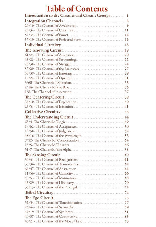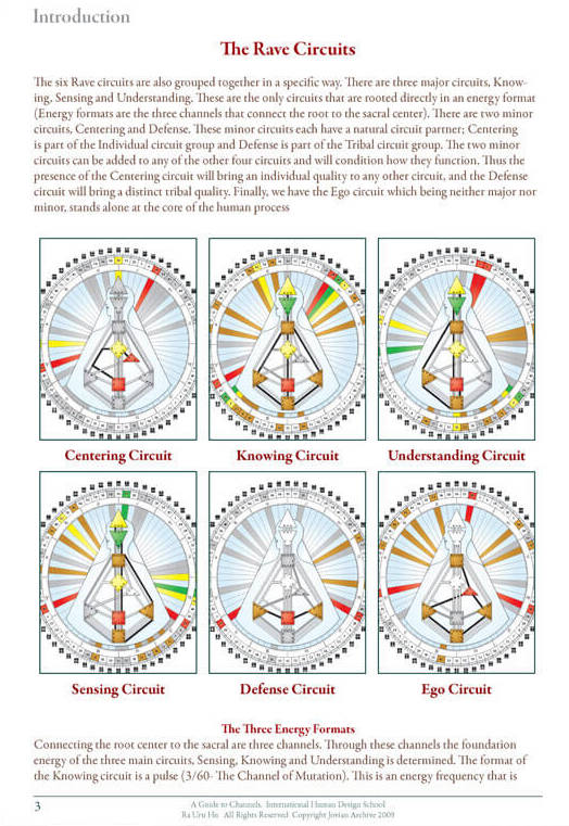 Rave Bodygraph Circuitry is an in-depth journey through the Circuits and Channels. It illustrates the connections between Circuit Groups, Circuits, and Channels. The book also describes each Channel and how the Gates relate to it, and ties the way the Channels work into the fundamental functionality of the Types. Unlike the Circuitry Book, which explains each Gate and Channel as an isolated element, this book describes how Gates, Channels, Circuits, Circuit Groups, and Types are interconnected.