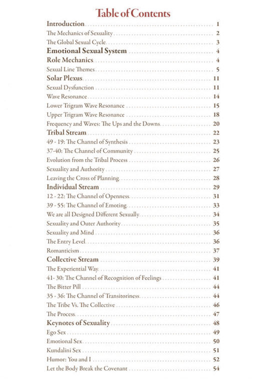 The Sexuality Manual summarizes the mechanics of how we care for one another and connect sexually. It explores the mapping of each individual’s connection to sexuality through the Streams of the Emotional system and the themes of Caring through the Splenic system. The book includes sexuality keynotes for each Gate and Channel in the Emotional and Splenic Streams, and sexuality keynotes of the Lines for each Gate in the Defense Circuit. Contains full color illustrations and quick reference keynote tables. An excellent reference book for understanding keynotes and relationship, especially for students of PTL2.1, on connection/partnership charts.